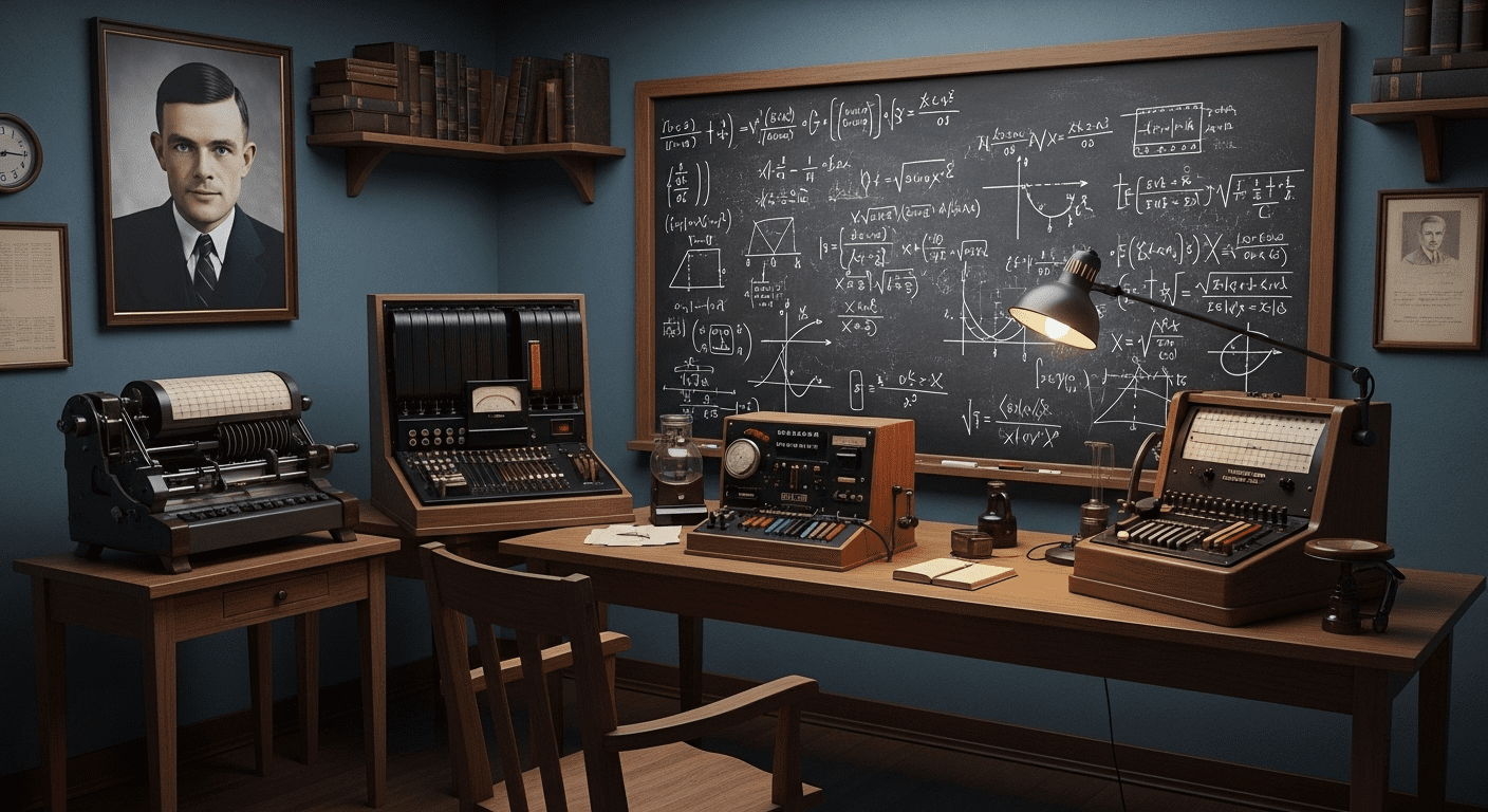 Um dos trabalhos de Turing foi “On Computable Numbers” (1936), com aplicação ao Entscheidungsproblem, um problema da lógica simbólica que consiste em achar um algoritmo genérico para determinar se um dado enunciado da lógica de primeira ordem pode ser provado. Em seu artigo revolucionário, que inaugurava os fundamentos da computação, Turing concluiu que seria possível criar uma máquina automatizada que materializasse fisicamente a lógica humana e solucionasse qualquer cálculo representado em um algoritmo.